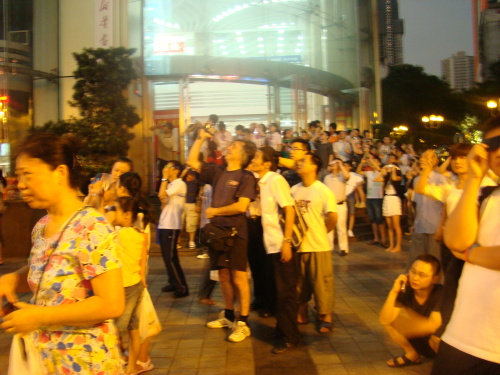 restaurant : en haut d'un immeuble, au 23° étage, qui tourne !!!! Jiuchongtian Xuanzhuan Fengweiting restaurant de l'hôtel Yudu (4 € le repas)