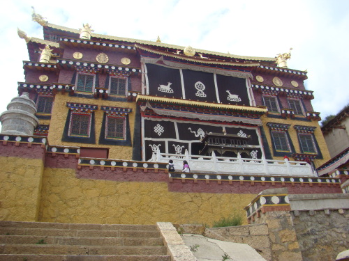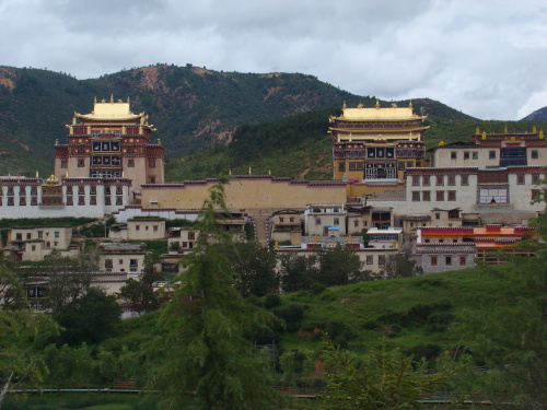 2 - le monastère Songzanlin : à l'extérieur de la ville ; il faut prendre un bus de ville qui s'arrête à un immense bâtiment abritant un guichet proposant une entrée à 9 €. Il faut ensuite prendre un autre bus qui conduit les clients à l'entrée du temple. Nous avons refusé ce prix exhorbitant et sommes partis à pied (3/4 d'heure) et visitons finalement sans payer