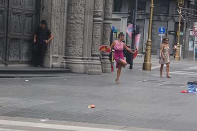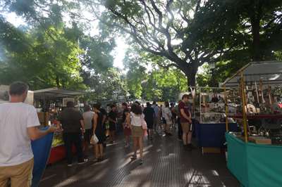 Cette pharmacie se trouve rue Defensa où un marché artisanal se prépare ; nous y retournerons cette après-midi