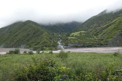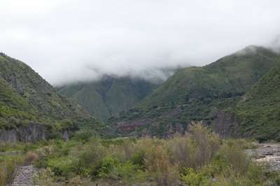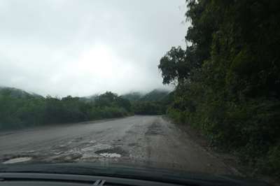 Le début n'est pas très encourageant : nuages très bas, route défoncée, envahie par l'eau .....