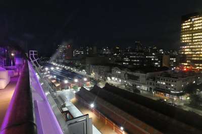 La place, avec ce grand bâtiment en forme de navire (un musée)