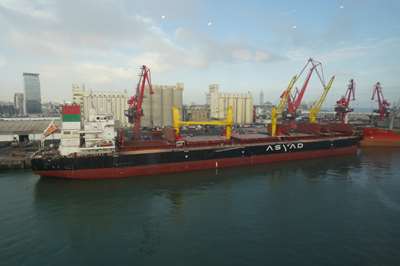 Au port, livraison de blé, emporté par des camions