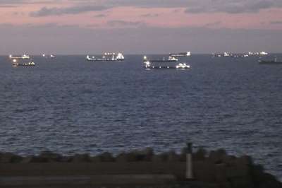 Les bateaux, au large, qui attendent une place dans le port