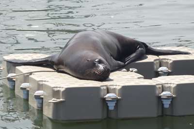 La surprise : des otaries en pleine sieste... C'est effectivement l'heure sauf que la sieste peut être mouvementée : voir cette vidéo en cliquant ICI