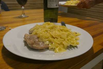 Aujourd'hui, c'est LE GRAND SOIR : mamie a une cuisine, et a trouvé de la viande (et du vin). On n'en a pas mangé depuis notre départ !!!