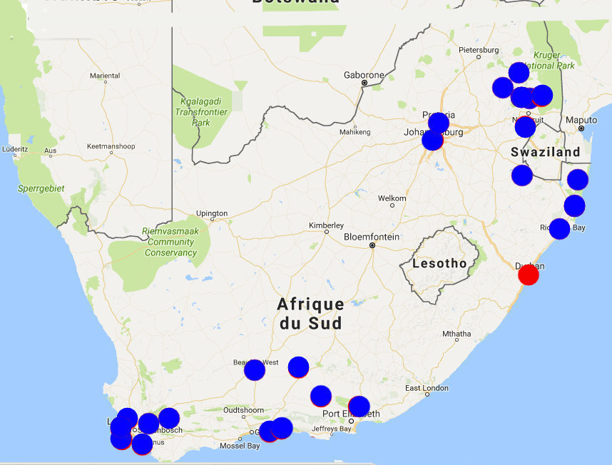 Un peu chaude, l'arrivée en voiture à Durban, mais avec Google map, on va au bout du monde