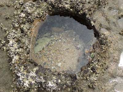 A marée basse, dans les anfractuosités des rochers :
