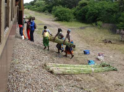 Le départ laborieux (premier arrêt de 10 mn au bout de 30 secondes), les arrêts interminables pendant la nuit, en pleine brousse, sans lumière, la lenteur toute africaine du train font naître quelques angoisses : nous savons que nous avons 7 heures de délai pour faire la corrspondance avec le bus, nous ne savons pas si ce sera suffisant .....