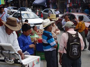 Un petit marché qui vaut pour son authenticité : les Indigènes en tenue traditionnelle, pas encore touchés par le tourisme. Pas un seul blanc à l'horizon