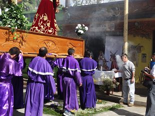 Dans l'église, pour la semaine sainte, reconstitution de la scène originelle avec les gardes romains