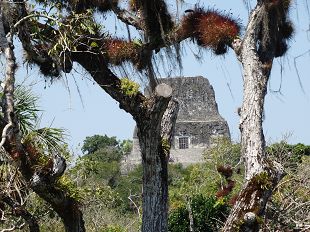Tikal s'étend sur 16 m², au milieu d'une magnifique forêt (parfois jungle) d'où se détachent les ceibas