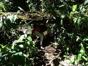 Le sentier, 6 km, prévus pour 5 heures ; mais nous n'irons pas au bout, trop dangereux car glissant