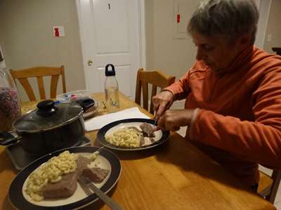 Un événement ce soir : c'est la première fois que nous mangeons de la viande depuis que nous sommes partis