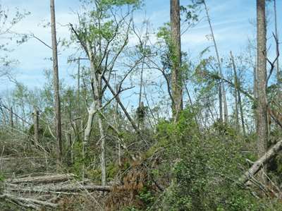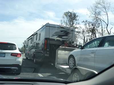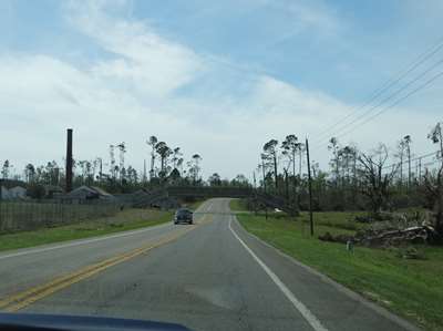 Nous longeons la côte où est passé l'ouragan que nous avions rencontré à l'aller ; mais cette fois-ci 40 km à l'intérieur des terres. De gros dégâts ici aussi, peut-être plus que sur la côte