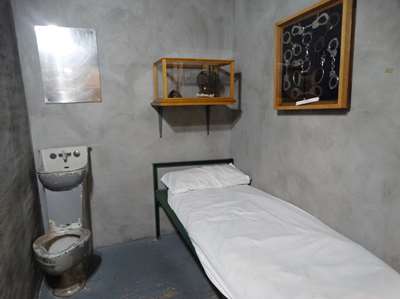 Reconstitution d'une cellule (pas de porte, uniquement des barreaux qui donnent sur un couloir)