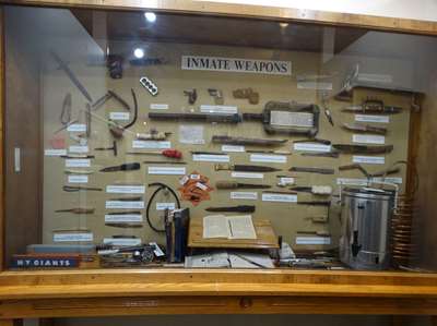 A l'entrée, un petit musée. Le Routard nous apprend qu'outre ce petit musée, on peut entrer dans une partie de la prison, voir l'ancien couloir de la mort ... A notre arrivée, la dame de l'accueil (au passage, sympa comme une porte de prison) calme notre excitation en nous annonçant que les visites ne peuvent être des groupes organisés (étudiants, églises ...) Pas nous ...