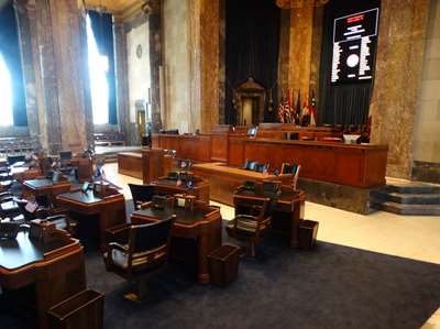 L'ancien Capitole à côté duquel est exposé un wagon ! C'est le wagon offert par la France à la Libération (1945) à tous les états en reconnaissance de l'aide apportée par les Etats Unis