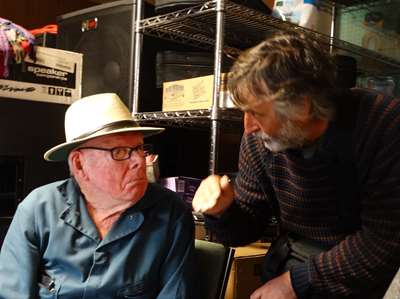 Steve Riley en plein concert avec son fils. Il est allé en France au festival de Seaulieu