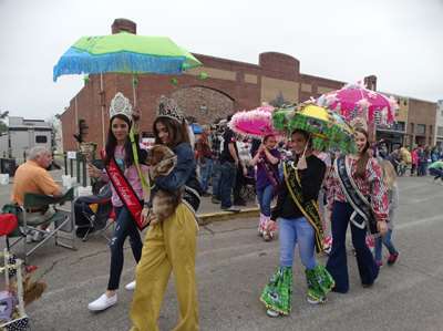 accompagné de la parade des chiens, jeunes filles et chariots décorés !