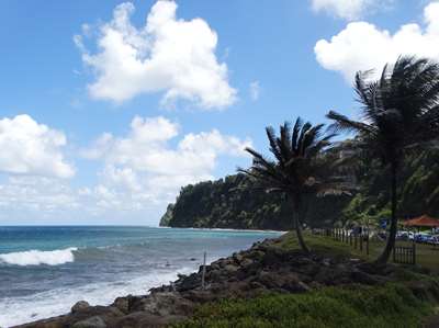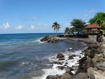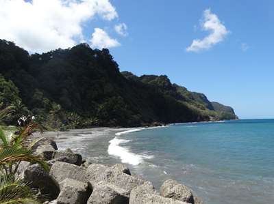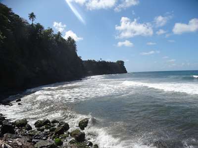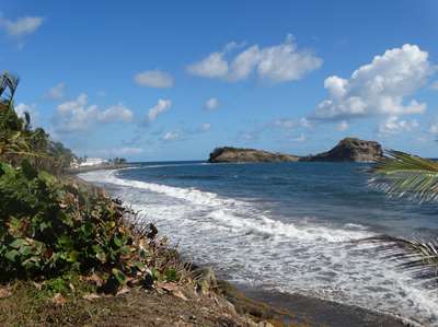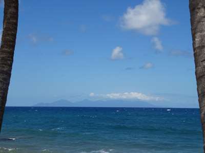 Au fond, nous apercevons La Dominique, une ancienne colonie anglaise. De l'autre côté, la Guadeloupe (qu'on ne voit pas)
