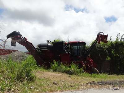 Une machine pour couper et ramasser la canne. Quand c'est inaccessible, ce sont les Haïiens qui viennent le faire ....