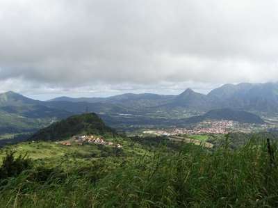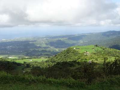 Sur les pentes de la Montagne Pelée un lieu d'où l'on voit les deux côtés de l'île