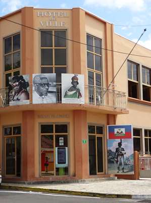 La mairie dont les murs extérieurs présentent des photos de personnalités ayant oeuvré pour la cause des Noirs