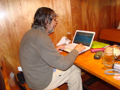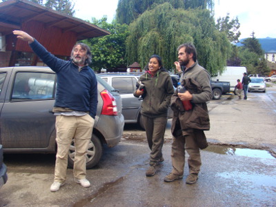 Dès le col franchi, une bruine tombe qui devient rapidement de la pluie drue..Il ne fait pas froid à El Bolson, mais il tombe des cordes. Nous tournons un moment en rond, cherchant un hôtel (mais rien), décidant de dormir au camping dans la voiture. Une accalmie nous laisse juste le temps de monter la tente ; nous avons tout à coup 35 ans de moins ; et les campeurs ont eux aussi (mais réellement) 35 ans de moins.