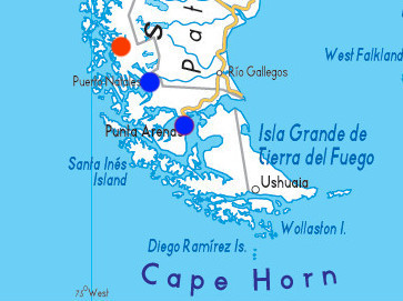 A Punta Arenas, nous nous rendons compte que le lac qui est devant nous, finalement, c'est le détroit de Magellan ! Surprise...