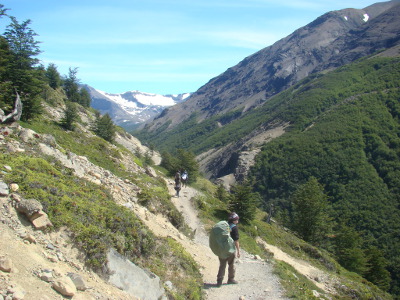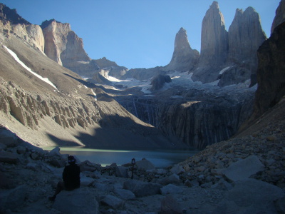25 janvier : transfert en bus (3 heures en tout), et première ascencion avec nos sacs à dos remplis à ras-bord: mise en route très éprouvante mais premières vues éblouissantes. 4 heures de montée, une douzaine de km, 400 mètres de dénivelé et installation au camping. Il reste à terminer la journée : aller aux "Torres" : 45 mn de montée (normalement) et 400 m de dénivelé. Alors là ! ça monte. Mais ça vaut la peine et les efforts !