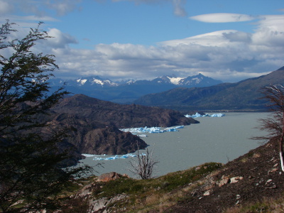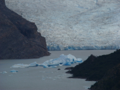 28 janvier : après cette nuit blanche, nous laissons nos sacs au camping (c'est tout de suite plus facile de marcher) et rejoignons en 2 h et demi, un mirador duquel s'offre à nos yeux éblouis un immense glacier de 5 km de large sur 27 km de long. Des pans se détachent formant ainsi des icebergs ! Une vue que nous ne sommes pas prêts d'oublier. Retour au campement et bateau et bus vers Puerto Natales