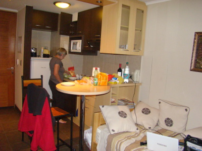 Deux heures de bus plus tard, nous arrivons à la capitale, Santiago de Chile, où nous prenons possession de ...... notre appartement ! Carrément !!! Pour pas plus cher que les hôtels que nous prenons habituellement ! Merci Booking !