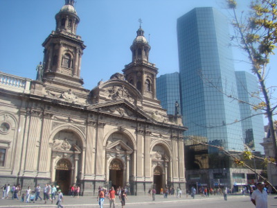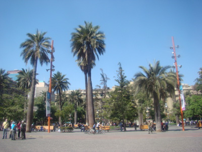 Nous avons quand même trouvé le temps de faire un petit tour en ville. Nous avons commencé par l'incontournable Moneda (le palais présidentiel) où Allende s'est donné la mort le 11 septembre 1973, lors du coup d'état de Pinochet soutenu par la CIA. L'après-midi, nous avons gravi à nouveau les marches du cerro Santa Lucía qui nous offre une belle vue sur Santiago mais aussi sur la cordillère des Andes. Nous l'avions connu il y a 9 ans l'hiver, les Andes enneigées, bien plus belles qu'aujourd'hui.