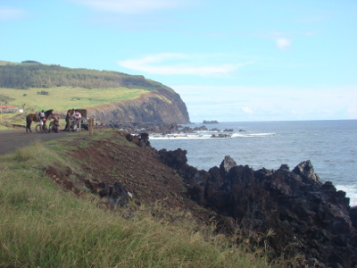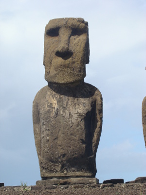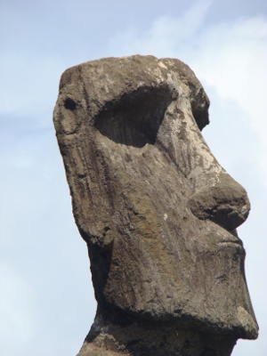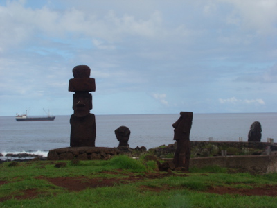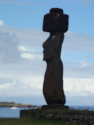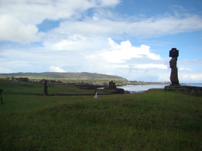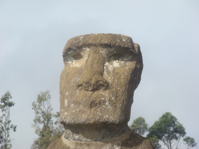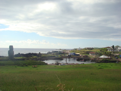 Une éclaircie, nous allons au village, Honga Roa, le seul de l'île qui ne compte que 3000 habitants (équivalent de Peyrehorade) et nous rencontrons nos premières statues.