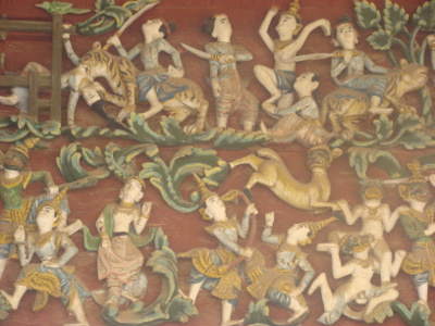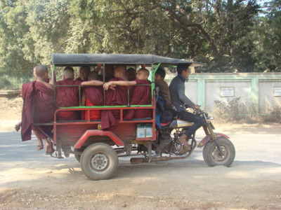 Aujourd'hui, c'est la fête de la pleine lune. Tout ce qui a 2, 3, 4, 6 ou 8 roues est de sortie pour amener les gens de pagode en pagode porter des offrandes pour que Bouddha soit content. Et ça chante sur les camions, et ça danse... Seul le Père Noël de Naïla sur son skate ne roule pas.