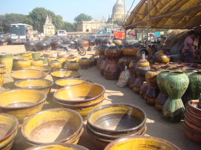 Mais avant de partir, nous traversons le marché de Bagan, quartier neuf (New Bagan)