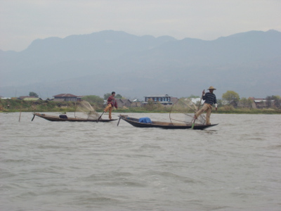 Nos premiers pêcheurs (ethnie intha) sur le lac (voir le repas d'hier soir)