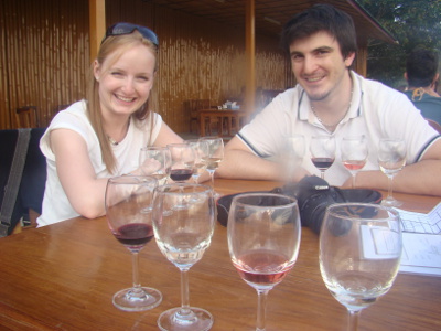 Un couple de jeunes palois en voyage de noces; déjà rencontrés à Mandalay, et que nous retrouvons au vignoble en train de déguster le vin local !!!