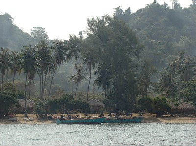 . En tuk-tuk jusqu'à l'embarcadère, puis en bateau, nous rejoignons en demi-heure l'île aux lapins