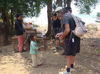 Une petite demi-heure pour rejoindre Kep, petit village côtier où il n'y a même pas de banque, mais qui a connu son heure de gloire avant l'époque des khmers rouges.(Les riches Cambodgiens et Français y avaient fait construire de superbes villas). Ils l'ont quasiment rasé et y sont restés jusqu'en 1998