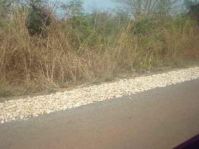 Comme d'habitude, la passage de la frontière est long, très long ; d'abord, en bateau, des passagers ont été oubliés (demi-tour etc...) ; nous montons dans le minibus, à 5 mn près , et filons vers la frontière. Là, une fois le passage effectué, nous attendons deux heures un minibus : il y a plus de passagers que de places; pour terminer, 5 heures de route défoncée..