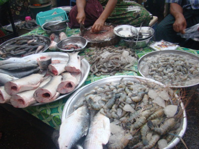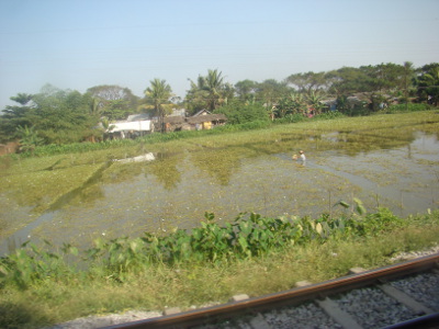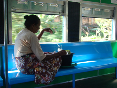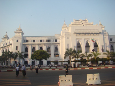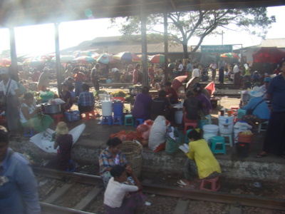 A la descente du train, nous partons vers le centre-ville de Yangon (ancien Rangoon) qui n'est plus la capitale administrative depuis la junte (2007) qui a créé, pour la remplacer, une ville au centre du pays (Naypyidaw)