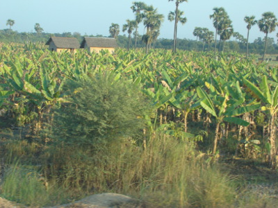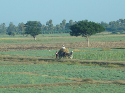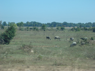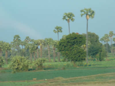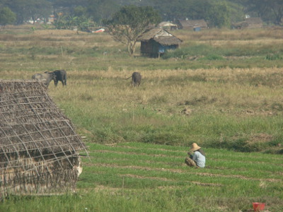 Jeudi 8 janvier : transfert à Mandalay : taxi jusqu'à la gare routière et à 9 heures nous démarrons vers le nord dans un bus très confortable. Pendant les 8 heures de trajet, nous remontons une plaine où alternent la culture du riz, des bananes et l'élevage des buffles...