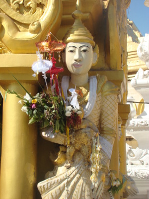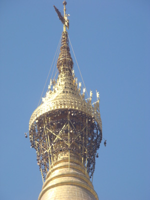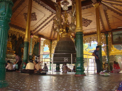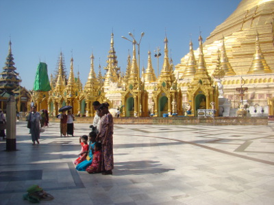 Mercredi 8 janvier : la pagode Shwedagon, le lac Kandawgyi : matinée un peu compliquée, nous essayons, avec les filles de l'hôtel, d'organiser la suite et notamment trouver un hôtel à Matambay où ils sont tous complets. Nous partons vers la pagode sans solution.