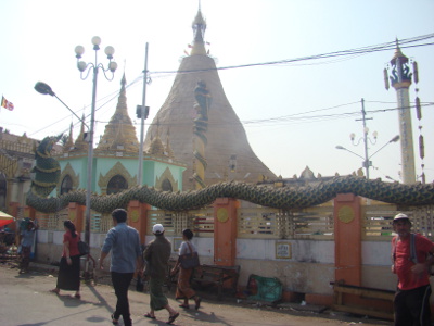 Lundi 27 janvier : en ville et une pagode : Dernier jour en Birmanie, nous nous replongeons dans la ville et retrouvons la chaleur après une nuit glaciale dans le bus (ils sont fous avec leur clim à fond)