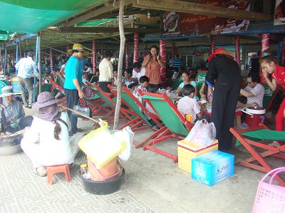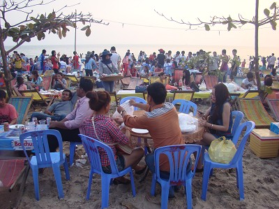 n minibus, en 3 heures, nous rejoignons Sihanoukville, la seule ville réellement balnéaire du Cambodge.Là, tous les ingrédients des plages plus la prostitution à moyenne échelle, où de vieux occidentaux s'offrent la chair fraîche des Cambodgienens