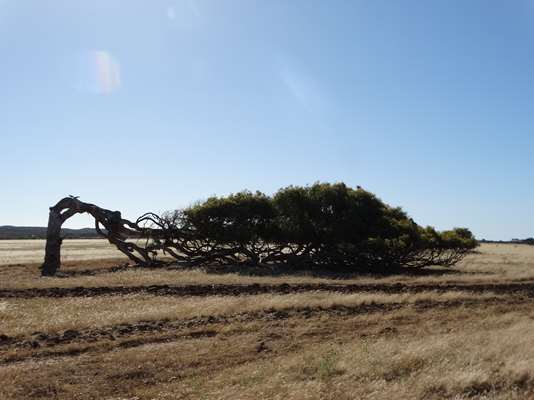 Ici, au bord de la mer, le vent souffle ; les arbres (une variété d’eucalyptus) en portent les stigmates