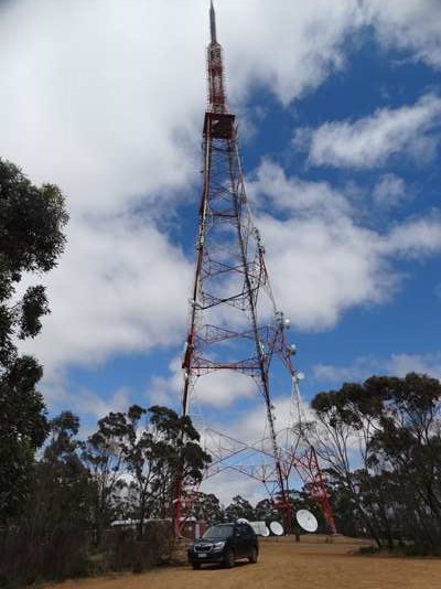 En haut une énorme antenne de télécommunication