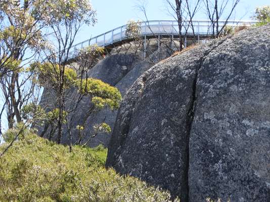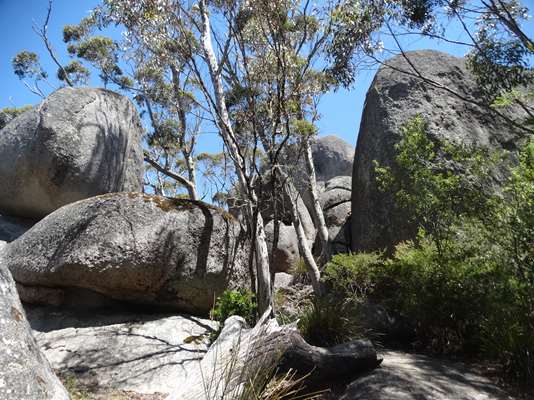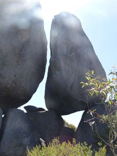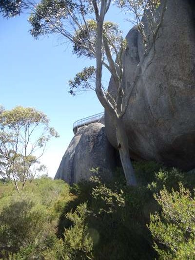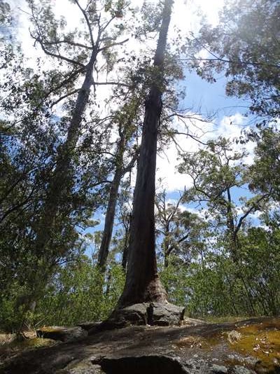 Une petite marche nous conduit à ce « tree rock » : arbre (un karri encore : regarde bien, il se marre) qui a poussé sur des rochers