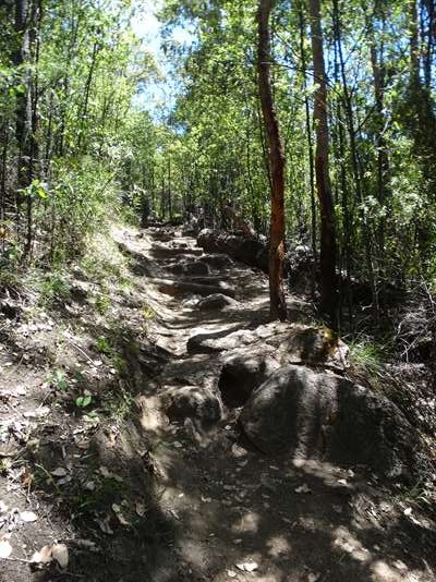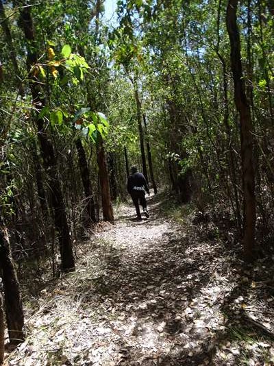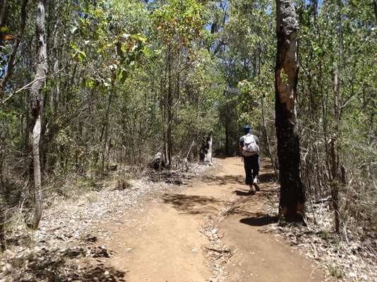 Une autre, un peu plus longue nous fait parcourir la forêt ; il semblerait qu’il y ait eu un incendie, il y a quelques années : les troncs des karris sont calcinés